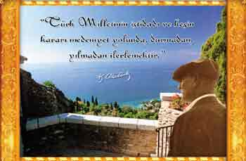 Yine başka bir ifadesinde Atatürk: "Türk milliyetçiliği, terakki ve inkişaf yolunda ve beynelminel temas ve münasebetler de bütün muasır milletlere muvazi ve onlara bir ahenkte yürümekle beraber Türk içtimai heyetinin hususi seciyelerini ve başlı başına müstakil hüviyetini mahvuz tutmaktır" 15 diye belirtmiştir.