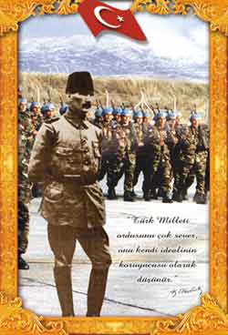 Ülkemiz üzerinde sinsi emeller besleyenlerin faaliyetlerini, bugüne kadar hep boşa çıkaran Türk Silahlı Kuvvetleri; dün olduğu gibi bugün de, pusuda bekleyen düşmanlarını fiili bir saldırıya girişmekten caydırmakta, kahramanlığı, vatanseverliği ve askeri dehasıyla tüm dünyanın hayranlığını kazanmaya devam etmektedir. Şanlı Türk Ordusu bugüne kadar, hiçbir karşılık beklemeksizin memleketimizin ve milletimizin hayrını, güvenliğini ve bütünlüğünü gözetmiş; tüm kurumlarıyla Cumhuriyetimizin, laikliğin, hukukun ve demokrasinin savunucusu olmuştur. Her türlü siyasi tartışma ve çekişmenin üstünde yer alan Türk Ordusu; Türk Milletinin topraklarını işgalcilerin elinden kurtarmış ve Cumhuriyet tarihi boyunca da bu toprakları her türlü iç ve dış düşmana karşı kahramanca müdafaa etmiştir. Büyük Önder Atatürk'ün, "Ordumuz; Türk topraklarının ve Türkiye idealini tahakkuk ettirmek için sarfetmekte olduğumuz sistemli çalışmaların yenilmesi imkansız teminatıdır" ifadesiyle de dikkat çektiği gibi, Ordumuz varlığımızın en önemli güvencesidir.