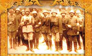 ![]() Mustafa Kemal'in komutasındaki askerler Enver Paşa'dan madalyalarını alırken |