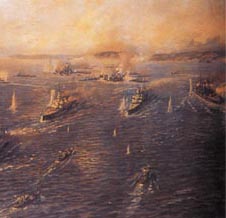 ![]() ![]() Tahsin Bey'in müttefiklerin Çanakkale Boğazı'na denizden saldırısını anlatan yağlıboya tablosu. |