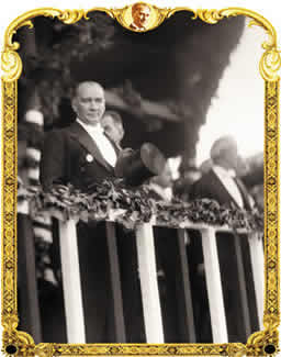 ![]() 29 Ekim 1933'deki 10. yıl kutlamaları sırasında görülen Atatürk'ün başarısının ardındaki sırlardan biri de, kayıtsız şartsız dürüstlüğüdür. |