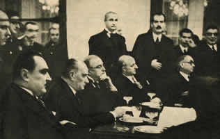 ![]() Atatürk, Balkan Paktı'na üye ülkelerin başbakanları ile birlikte (sağdan sola Yugoslavya, Yunanistan, Romanya ve Türkiye Başbakanları) |