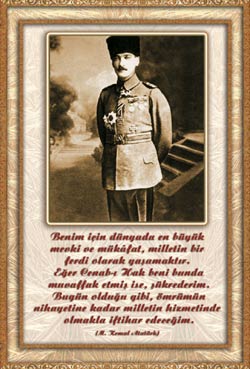 Büyük Önder vatanın kendisi için ne anlama geldiğini ve hayatını vatanı uğrunda harcamaktan şeref duyduğunu ise şöyle belirtmektedir: