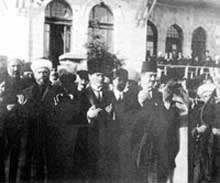 ![]() Atatürk TBMM'nin açılışında din adamlarıyla birlikte. |
