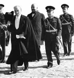 ![]() Mustafa Kemal Atatürk:"Efendiler, Allah Bir'dir, büyüktür. Kur'an bir Kitab-ı Ekmel'dir. Cenab-ı Peygamber Hatemül Enbiya'dır." "Dinsiz milletlerin devamına imkan yoktur." |
